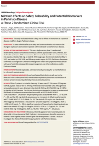 ニロチニブのParkinson病に対する第2相試験です。治療効果の評価には運動症状のみならず、脳脊髄液のドパミン代謝産物やα-シヌクレインオリゴマーなどの病態タンパク質の濃度が用いられています。疾患修飾療法の幕開けを感じます。