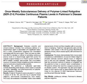 週1回皮下投与のrotigotine製剤によって安定したrotigotineの血中濃度が週単位で得られることが報告されました。Parkinson病の初期治療に用いた後の運動合併症の出現など、長期の効果も気になりますが、今後の開発に期待したいです。