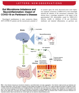 パーキンソン病(PD)の発症過程の一つが腸脳相関により説明できること知られていますが、新型コロナウイルスへの感染は腸管の炎症や腸内細菌叢の異常を惹起し、PDの発症リスクとなる可能性が示されています。新型コロナウイルス感染症が収まりませんが、今後のPDの疫学が注目されます。