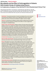 NABVIGATE ESUS trialのサブ解析より.脳微小出血(cMBs)のあるESUSでは,2次予防薬の違い(aspirinかrivaroxaban)による脳卒中再発や死亡率は違いがないようです。現状のESUSの概念では適切な2次予防薬を決められないのかも。