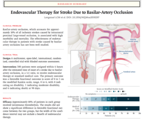 椎骨・脳底動脈系に対する血栓回収療法(MT)の有効性は、内科治療と同等のようです。IV rt-PAが実施できない時間帯(発症 4.5時間~24時間)でのMT有効性について興味があります。