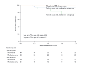 ハイリスクPFOを閉鎖しなかった60歳以上例は、脳梗塞再発率が上昇するのかもしれません。