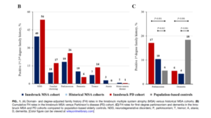 多系統萎縮症は孤発性の疾患と考えられていますが、3等親以内の家族歴を調査したこちらの研究では、実に40%の患者で神経変性疾患の家族歴(最多は18%を占めるパーキンソン症状の家族歴)を認めます。同疾患にも遺伝歴要因が関与しているのでしょうか?
