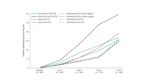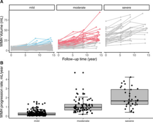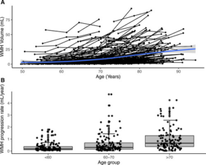 SVDの長期画像フォロアップの研究です。年齢とベースラインの深部白質病変が、深部白質病変の進行と強い関連があるようです。若いうちにMRI画像でスクリーニングし動脈硬化のリスクコントロール(主に降圧)を強化することで白質病変の進行を遅らせることができるかもしれませんね。