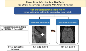 Asymptomatic、silentではなく、covert brain infarct (CBI)という表現には含蓄があります。心房細動が原因の心原性脳塞栓症は、塞栓性を疑うCBIを認めればその後の症候性再発リスクが増加する、腑に落ちますね。CBIという表現に注目です。