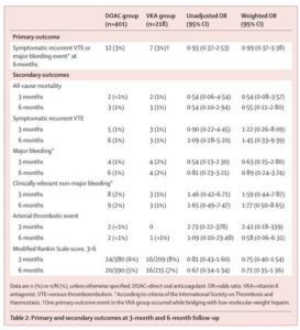 今週は脳静脈洞血栓症に対するDOACvsワーファリンの試験です。DOACはワーファリンと比してVTEの再発や出血が同等であったとのことで、より管理が容易なDOACの選択を促す結果でした。 個人的に気になったのが、対象にはAPSが数%含まれていますがDOACが選ばれていた(!)ことが驚きでした。(Strokeチームより) Direct oral anticoagulants versus vitamin K antagonists for cerebral venous thrombosis (DOAC-CVT):an international, prospective, observational cohort study van de Munckhof, AnitaAtaklı, Dilek et al. Lancet Neurol, 2025:24(3):199-207