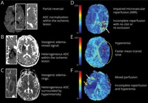 3.Early Post-Thrombectomy MRI Markers: Temporal Evolution and Association With Reperfusion and Clinical Outcome. Luby ML, et al. Neurology. 2025 Dec 23;105(12):e214418. doi: 10.1212/WNL.0000000000214418. EVTでは、血管の再開通が得られても必ずしも良好な臨床転帰に結びつかない症例が少なくありません。EVT後早期に施行したMRIにおける再灌流状態と画像マーカーの経時的変化が、臨床転帰とどのように関連するかを検討した論文になります。 前方循環の主幹動脈閉塞に対してEVTが試みられ、EVT後6時間以内および24時間後にMRIを施行した207例を前向きに登録し、不完全再灌流の有無、病変増大、浮腫、灌流パターンなどのMRIマーカーを評価しました。 結果、EVT後MRIで不完全再灌流は54%に認められ、不完全再灌流群では病変増大・脳浮腫が24時間後・5日後ともに有意に多いこととなりました。mTICI 2b/3でも、IMR(微小循環障害)や混合灌流パターンがしばしば残存していました。 24時間後にstable lesion pattern(病変増大・浮腫なし)は全体の12%のみで多くはEVT後も進行性に拡大しており、24時間後NIHSSは不完全再灌流群で有意に高値(8 vs 13)でした。 少し難しいかもしれませんが、「再開通(recanalization)」と「再灌流(reperfusion)」は別物である、と主張する論文です。その核心は微小循環障害(Impaired Microvascular Reperfusion:IMR)にあり、微小血栓や内皮障害、血管攣縮などで毛細血管・細動脈レベルで血流が流れないことによります。 今後、血管内治療で再開通を目指した後に再灌流を目指す治療(t-PA動注療法でしょうか?)も必要になってきそうですね。(Strokeチームより)